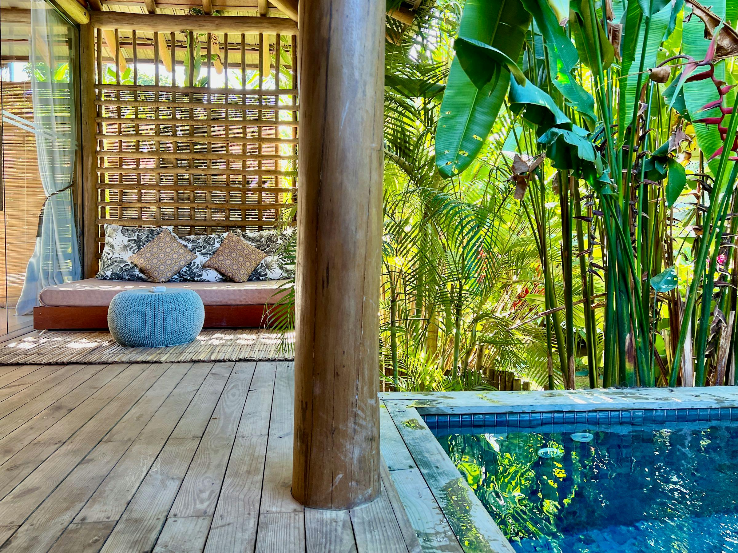 Essencial, aconchegante e sensual. Flutuando em meio à natureza tropical, Uma varanda coberta que se transforma em uma sala ao ar livre com piscina privativa. Agua aquecida ate 30 gr aprox.