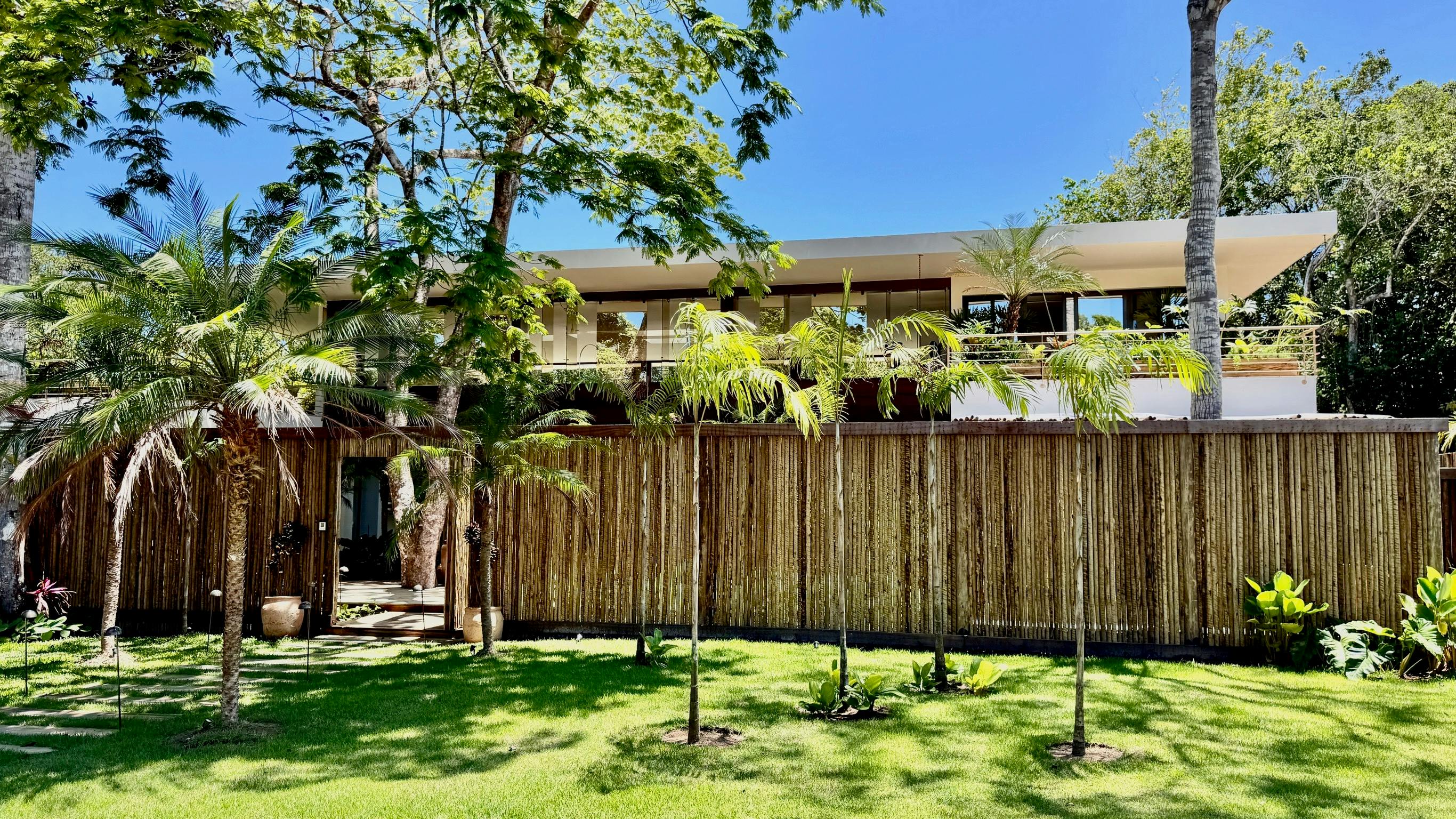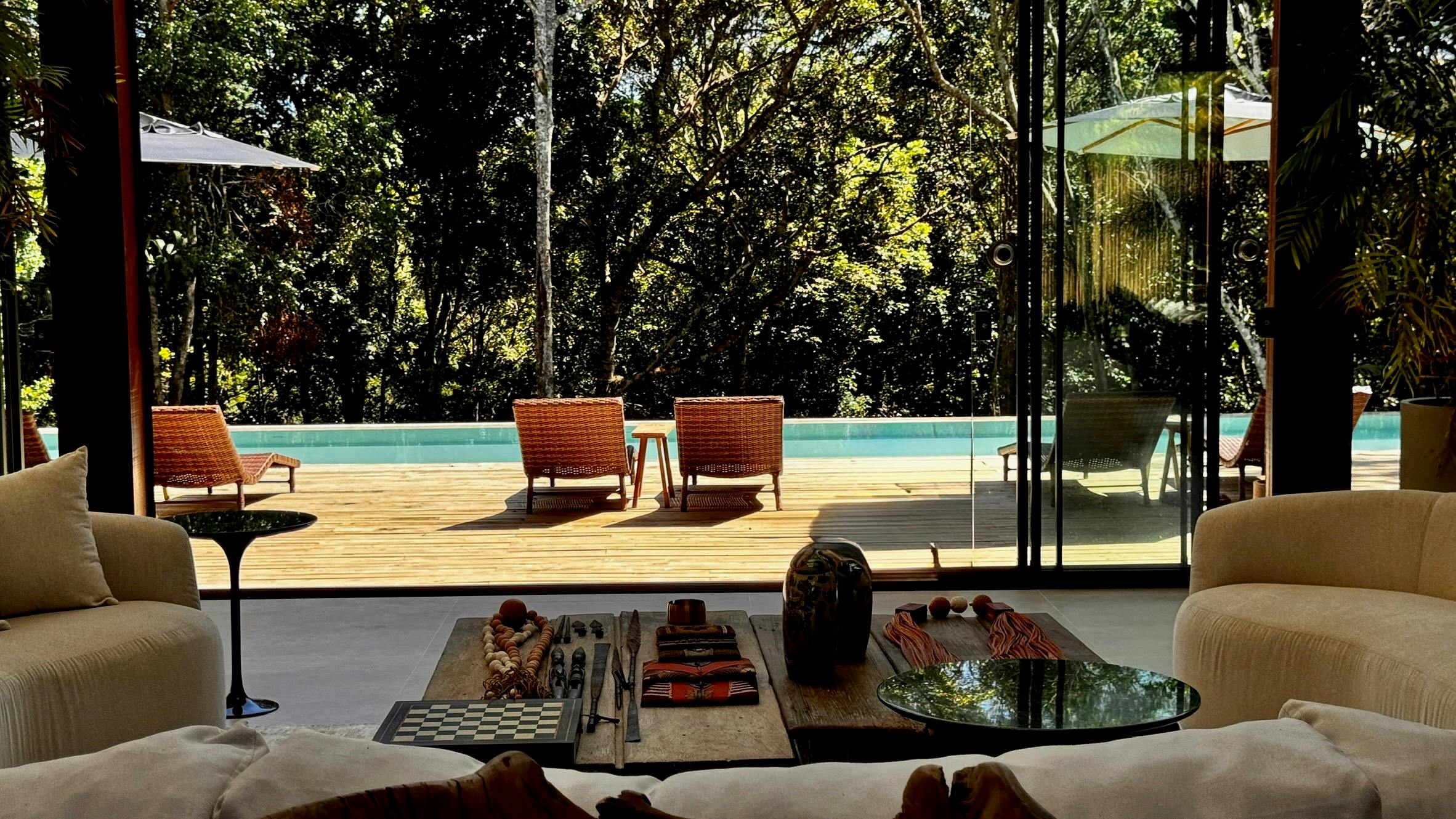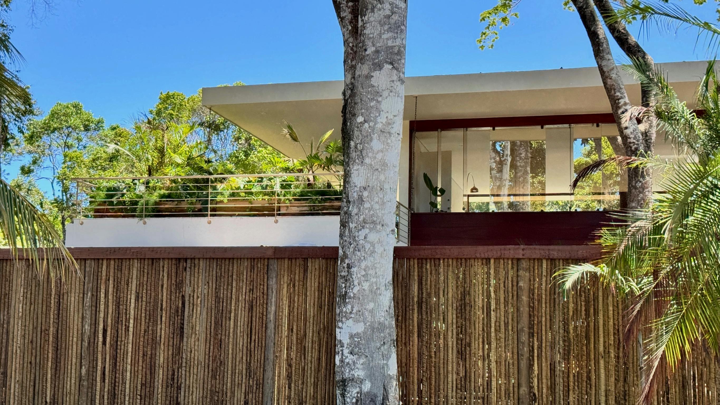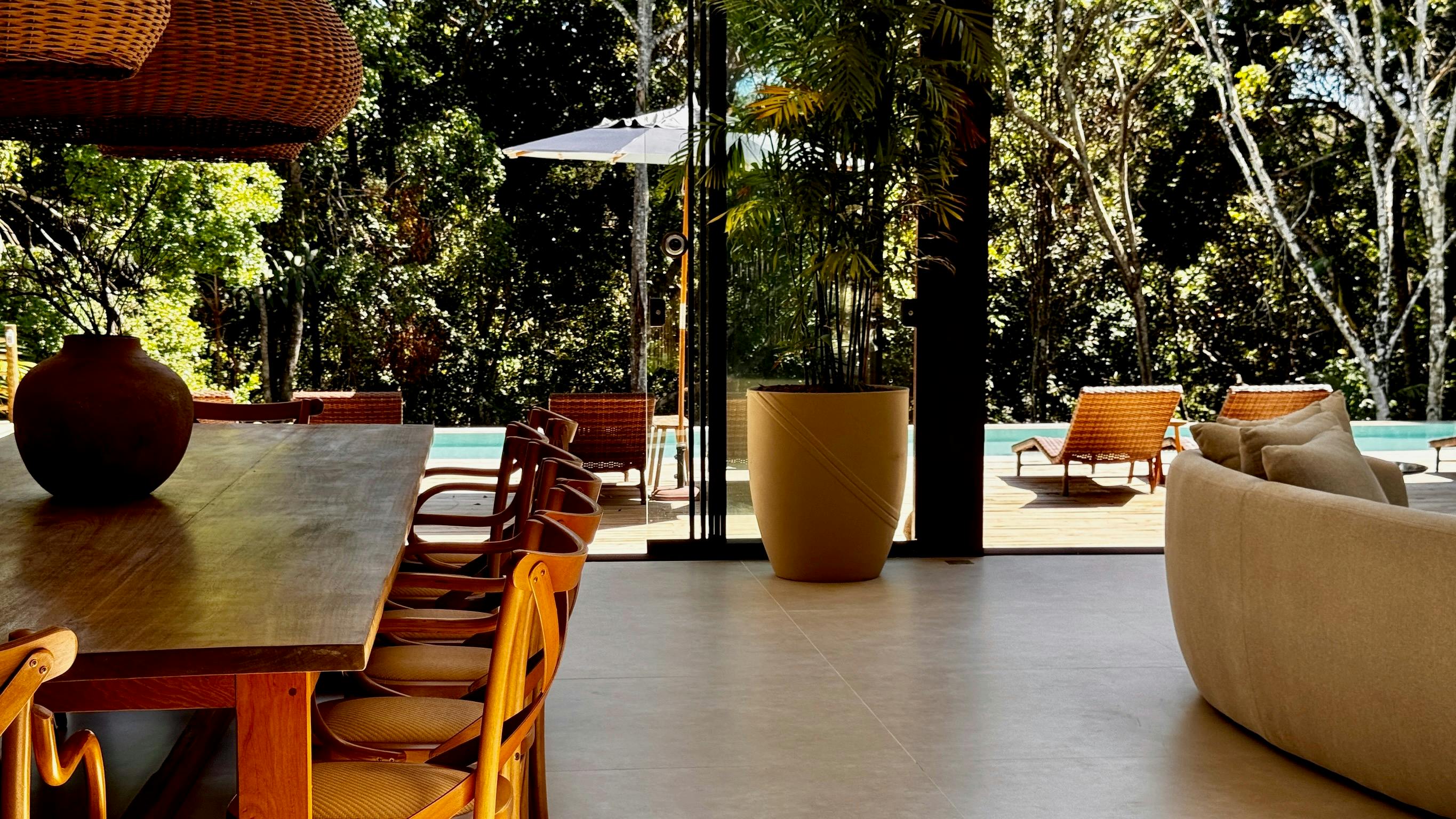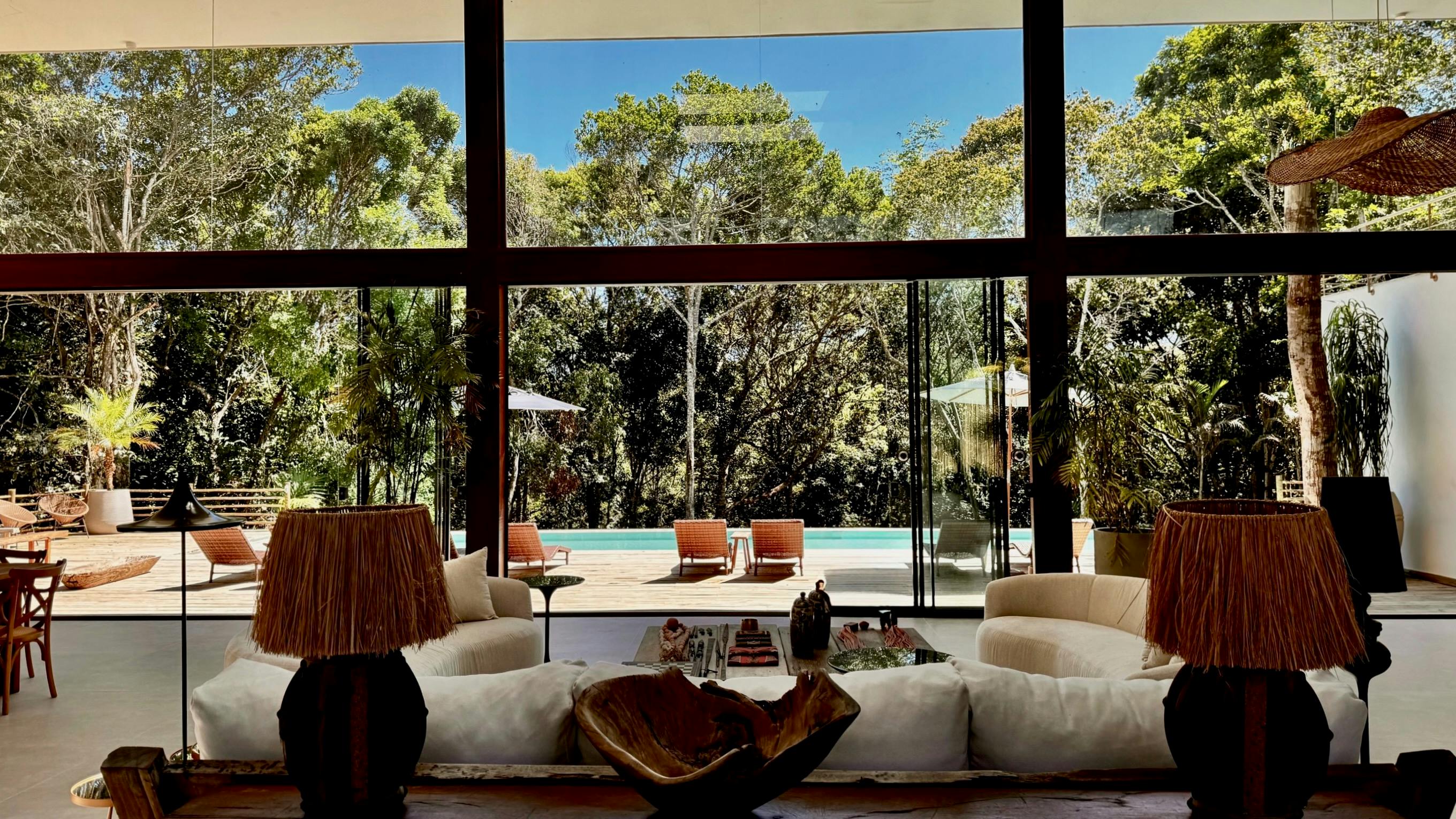 A Villa Áurea é uma residência de 700 m² escultoria e biofílica imersa na mata preservada, apenas 300 metros da praia.