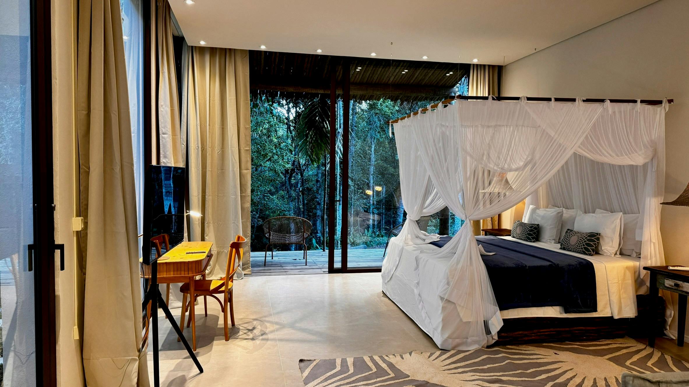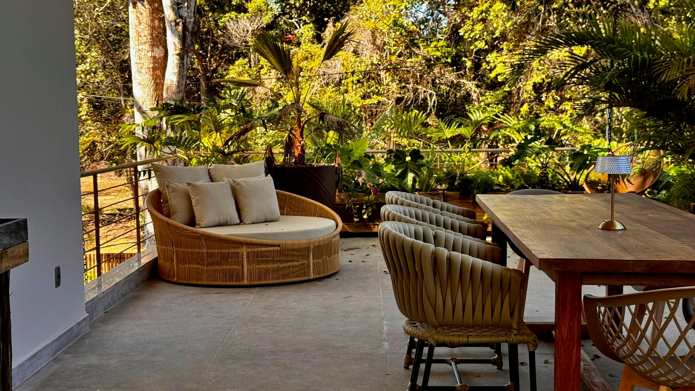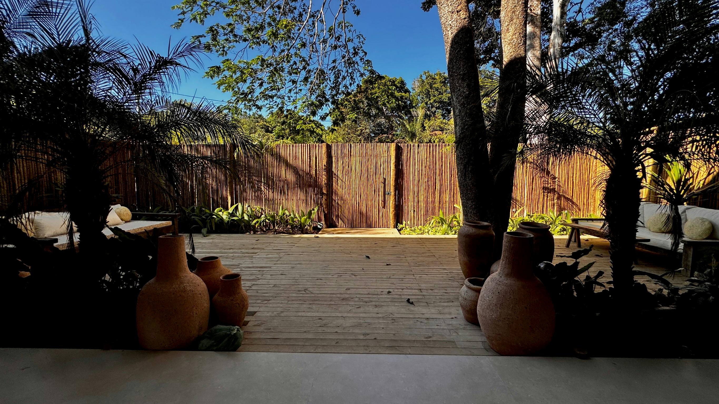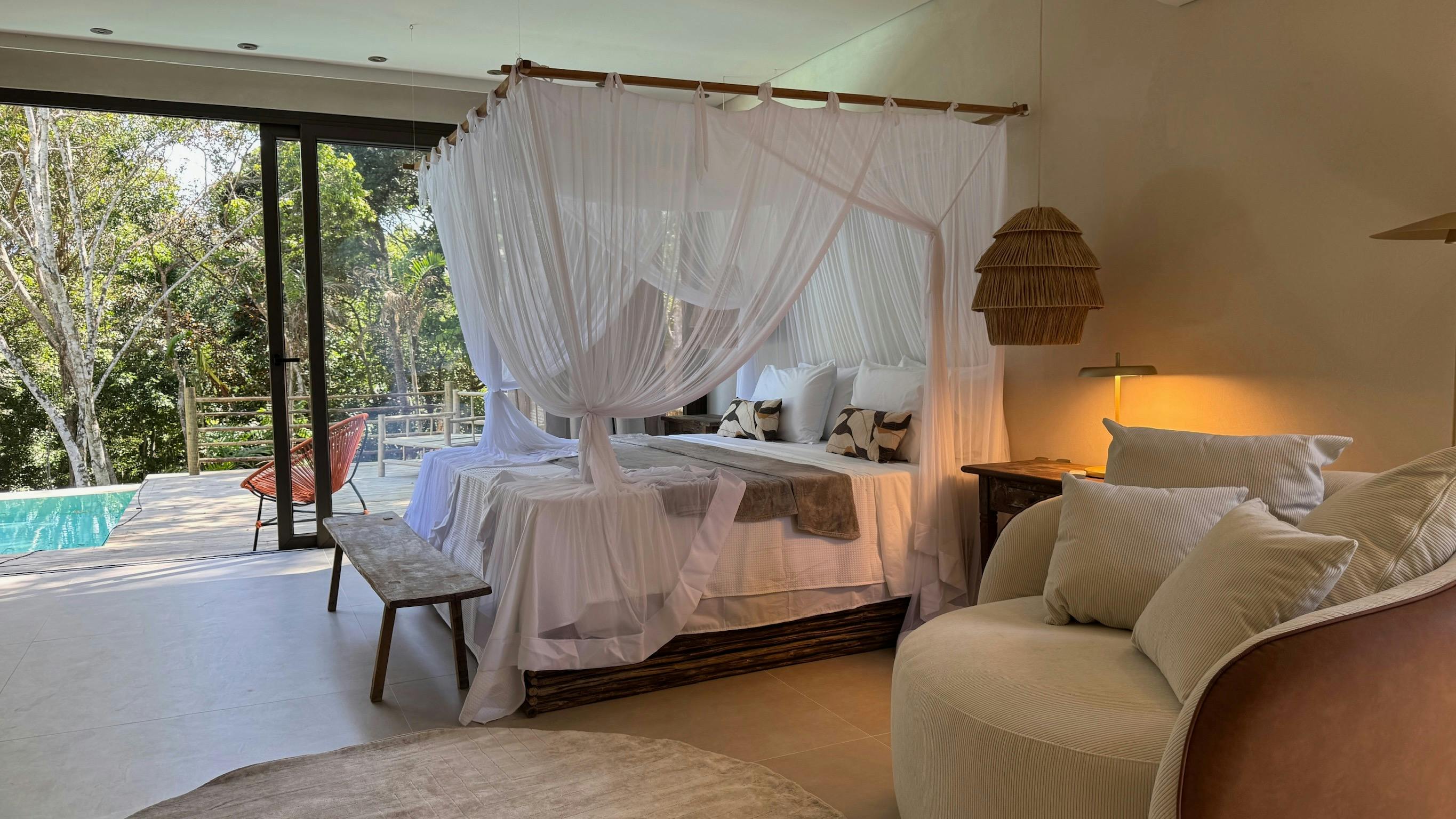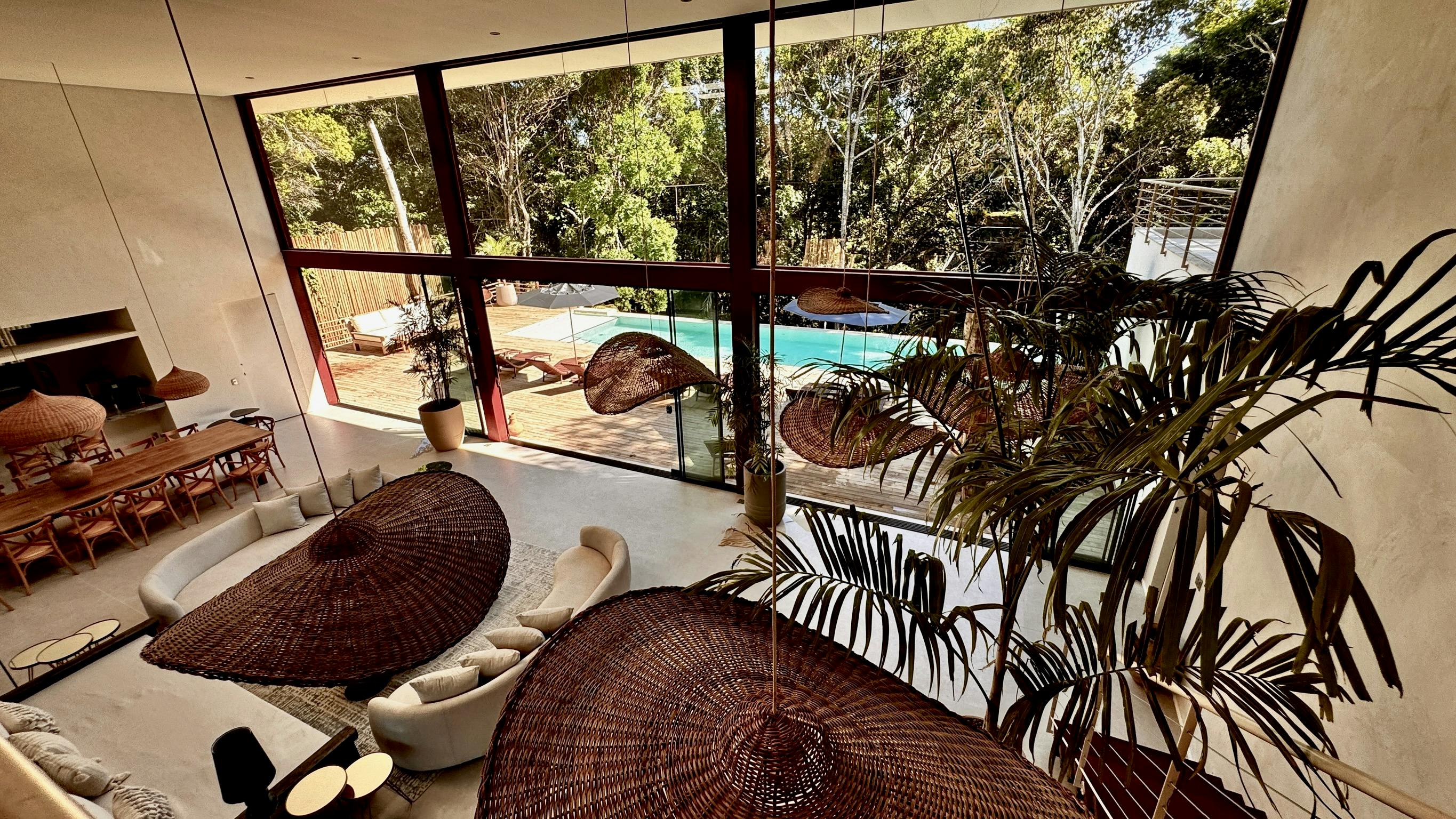 A Villa Áurea é uma residência de 700 m² escultoria e biofílica imersa na mata preservada, apenas 300 metros da praia.