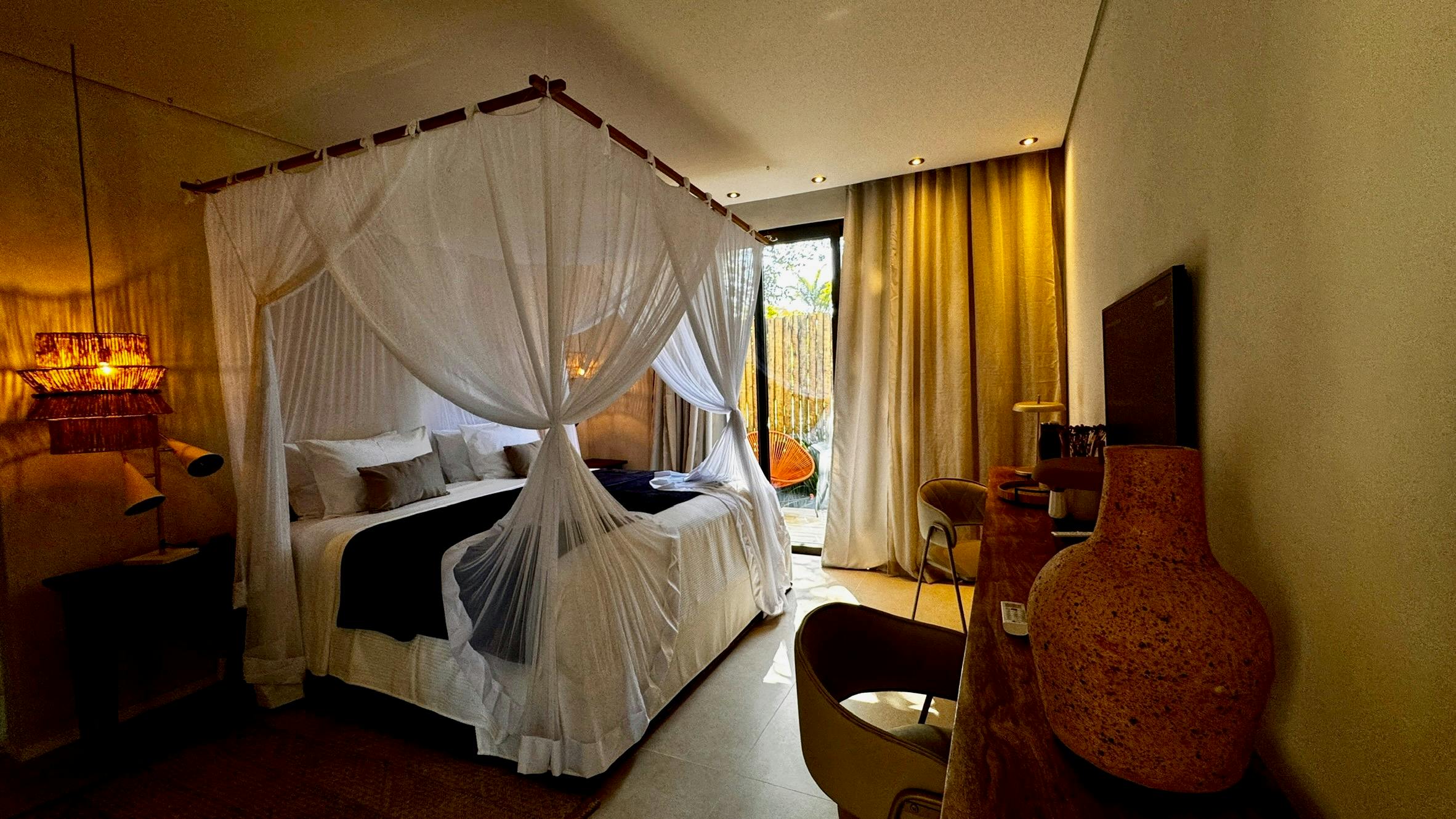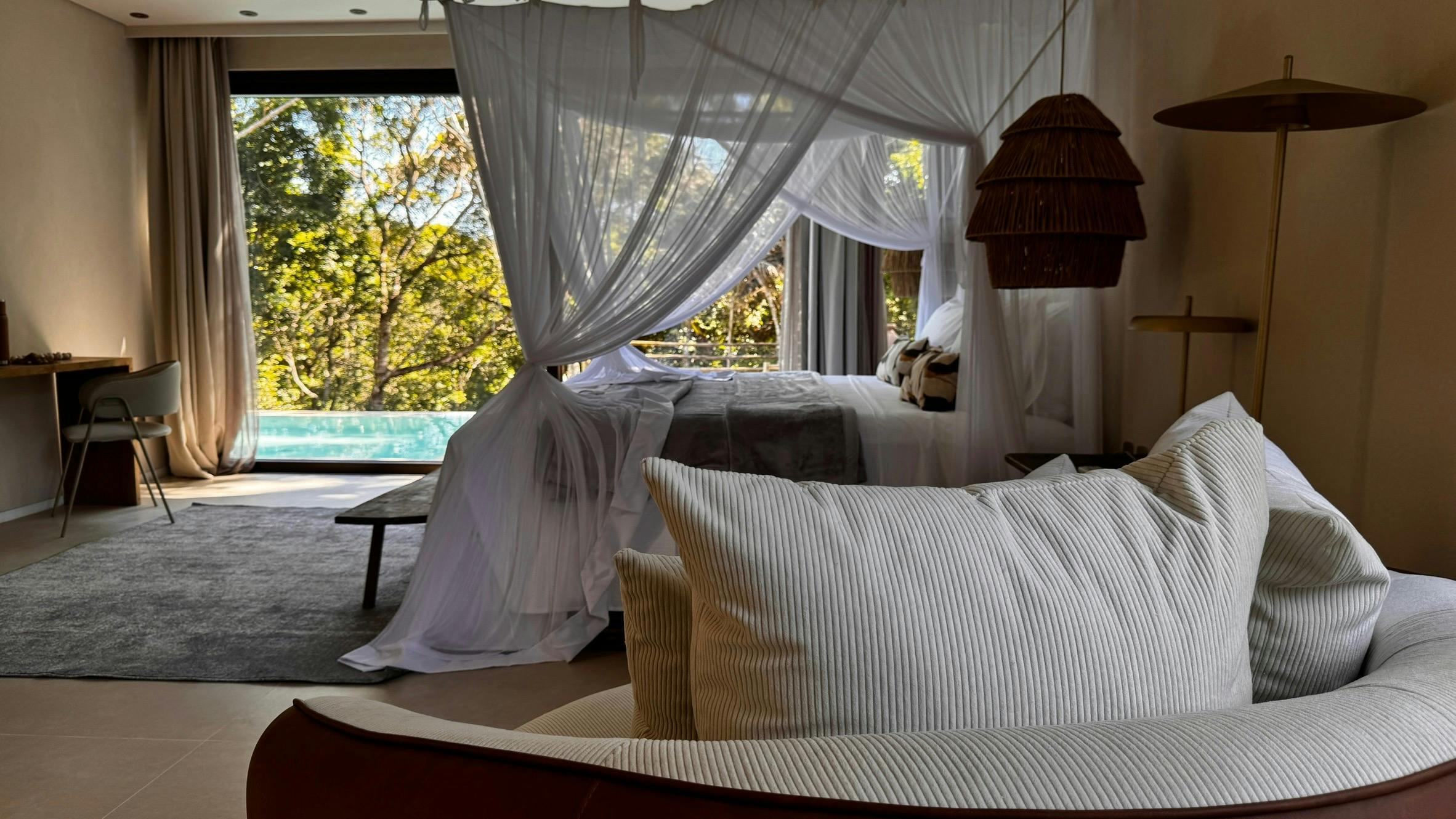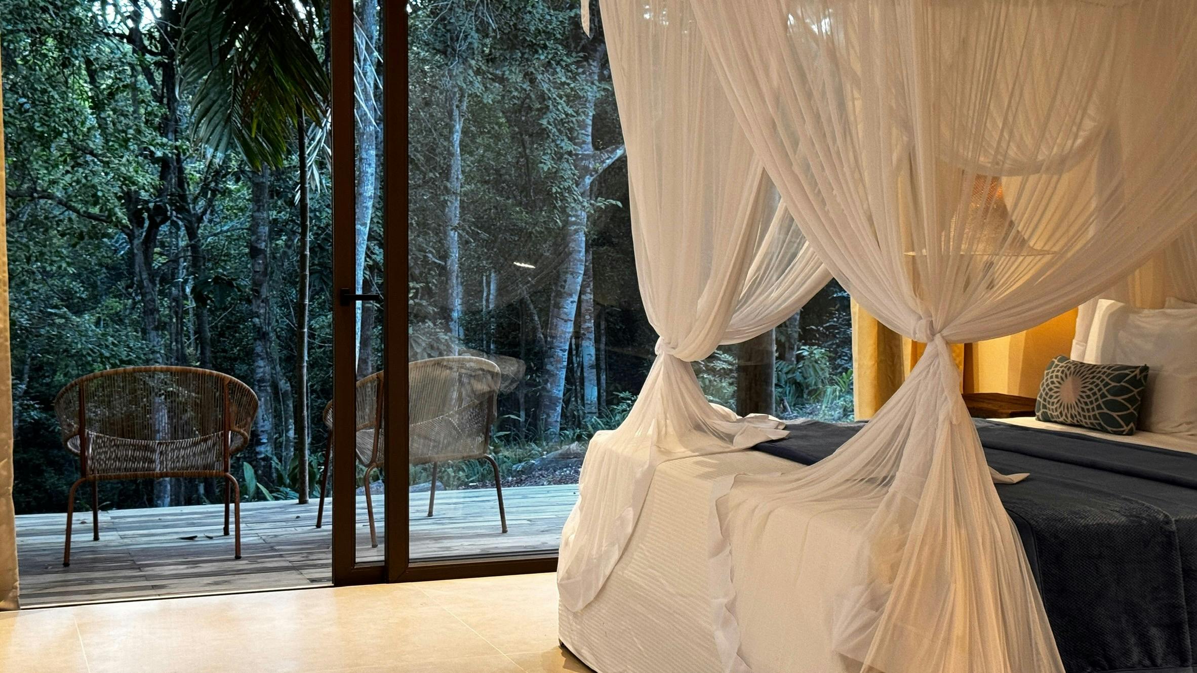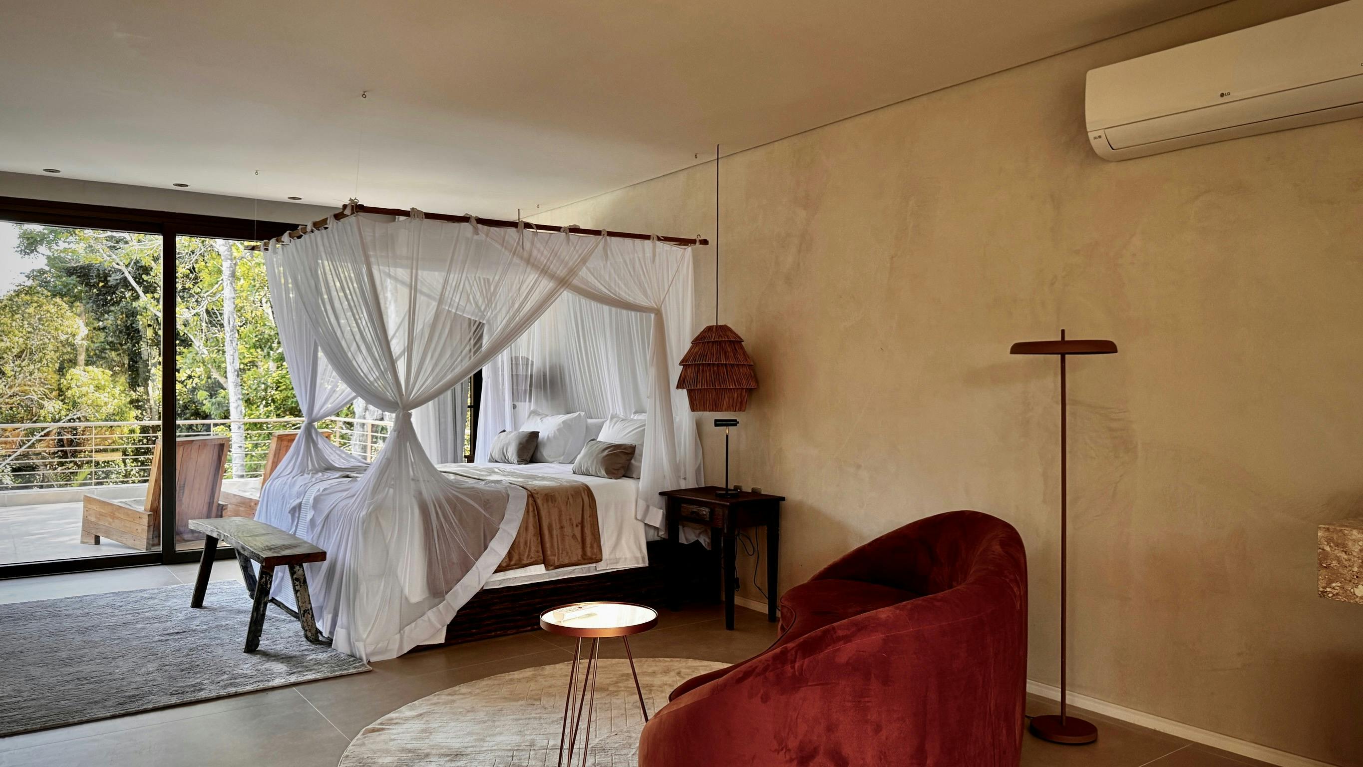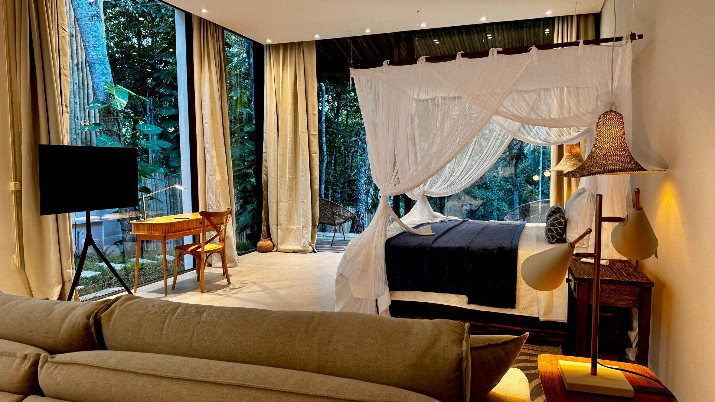 A Villa Áurea é uma residência de 700 m² escultoria e biofílica imersa na mata preservada, apenas 300 metros da praia.